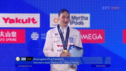 VideosBackstage Videos Καλλιτεχνική κολύμβηση: Η απονομή του χρυσού μεταλλίου στην Ευαγγελία Πλατανιώτη
