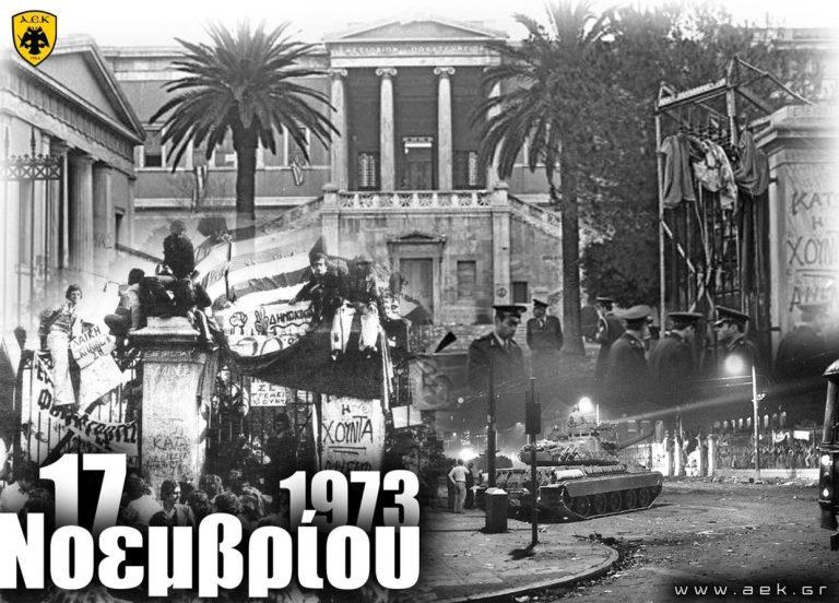 ΣπορΑΕΚ ΕΡΑΣΙΤΕΧΝΙΚΗ ΑΕΚ ΓΙΑ ΠΟΛΥΤΕΧΝΕΙΟ: «Τιμή σε όσους έπεσαν αγωνιζόμενοι για Ψωμί, Παιδεία και Ελευθερία»