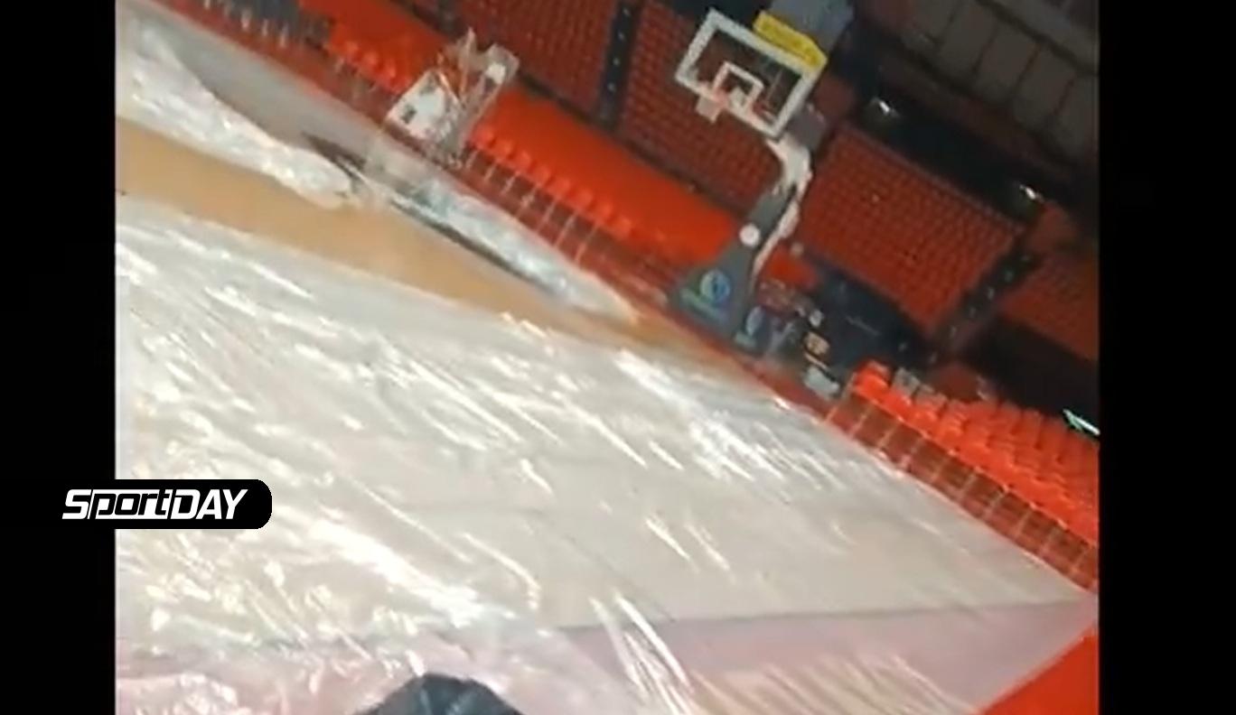 ΣΕΦ: Στάζει ξανά η οροφή - Κουβάδες και νάιλον καλύπτουν το παρκέ