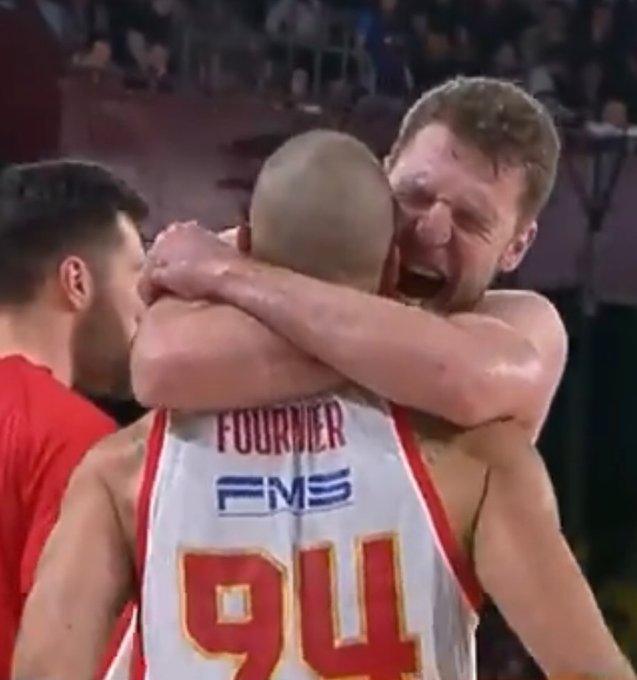 Ο Γάλλος παρέδωσε το πρώτο του γράμμα. Δεν έκανε το πρώτο καλό του παιχνίδι, ούτε έβαλε το πρώτο του μεγάλο καλάθι. Για πρώτη, όμως, φορά ακούστηκε ότι «το πήρε στο μπάζερ ο Φουρνιέ». Στα 3 δευτερόλεπτα τίποτα δεν έδειχνε ότι τούτη η επίθεση θα κατέληγε έτσι. Τίποτα πέρα από το μοναδικό -ή σπάνιο- ταλέντο και μυαλό του «μπασκετικού Ζιζού» που έχει πλέον στις τάξεις του ο Ολυμπιακός για να καθαρίζει και τέτοια παιχνίδια. Αυτός δεν πανηγύρισε, οι άλλοι τρελάθηκαν. Η φωτογραφία με την παθιασμένη αγκαλιά του Βεζένκοφ στον Γάλλο, είναι το τέλειο κάδρο. Αν αυτή είναι η σχέση των δύο κορυφαίων σου, μάλλον το ταβάνι σου είναι ψηλό.