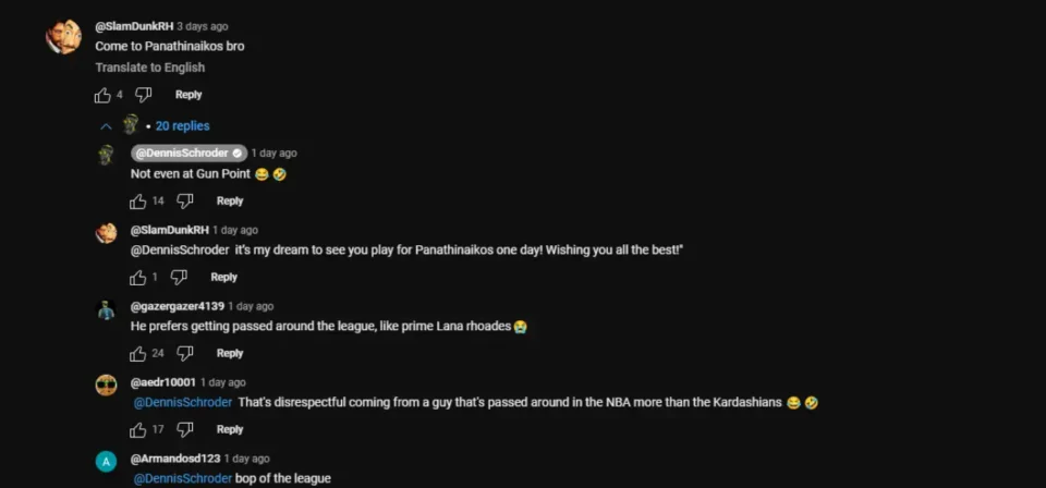 Με έναν περίεργο τρόπο επέλεξε να απαντήσει σε πρόταση φίλου του Παναθηναϊκού να έρθει στους πρωταθλητές Ελλάδας και Ευρώπης, ο Ντένις Σρέντερ.