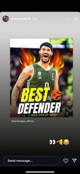 Παρότι ο Τζέριαν Γκραντ έμοιαζε να είναι το φαβορί για το βραβείο του αμυντικού της χρονιάς στη EuroLeague, αυτό κατέληξε αλλού και συγκεκριμένα στον Ουάιλερ-Μπαμπ της Μπάγερν Μονάχου.