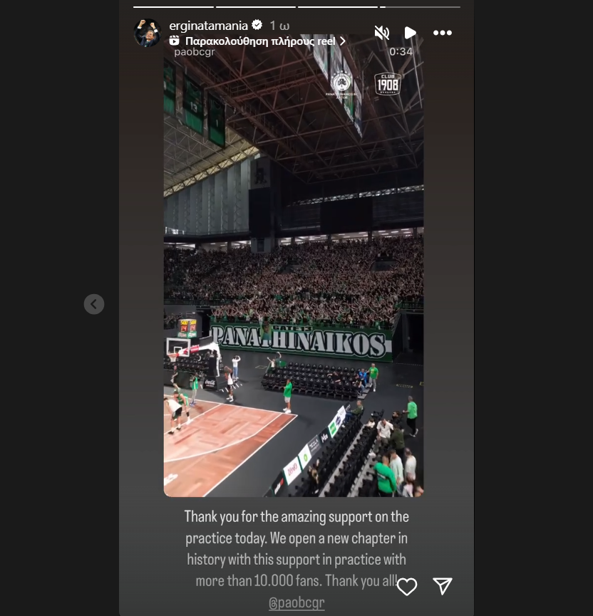 “Ευχαριστώ για την εκπληκτική υποστήριξη στην προπόνηση σήμερα. Ανοίγουμε ένα νέο κεφάλαιο στην ιστορία με αυτή την υποστήριξη στην προπόνηση με περισσότερους από 10.000 οπαδούς. Σας ευχαριστώ όλους”.