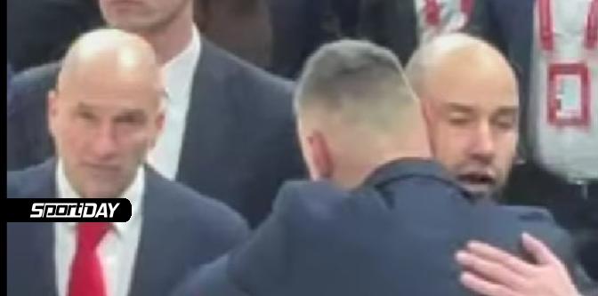 Γιασικεβίτσιους-Σπανούλης: Η στιγμή που ο συγκινημένος Σάρας αγκαλιάζει τον «Kill Bill» στη λήξη του τελικού
