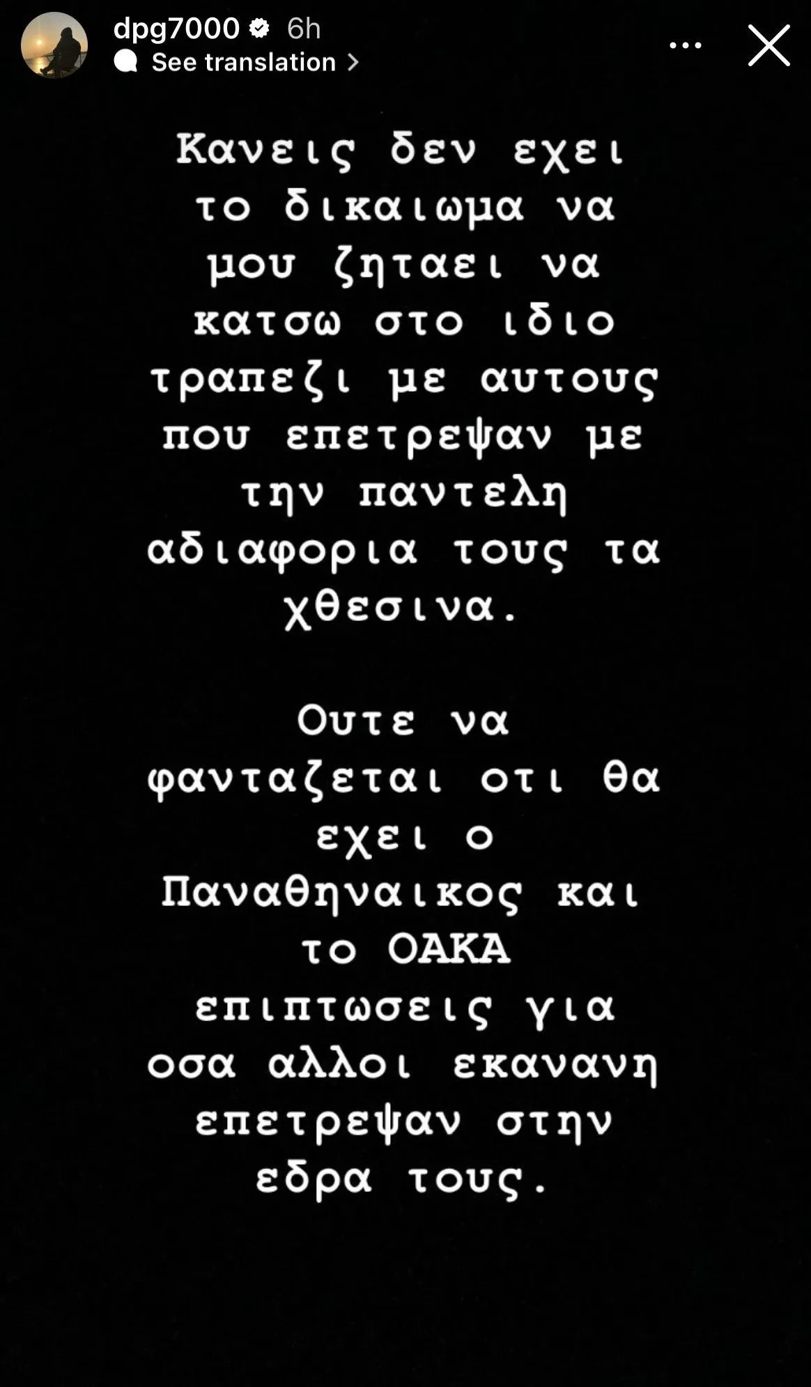 Ο Δημήτρης Γιαννακόπουλος συνέχισε τις τοποθετήσεις τους μέσω Instagram, με τελευταία αυτή που δημοσιοποίησε περίπου δύο ώρες μετά τα μεσάνυχτα της Δευτέρας (2/6).