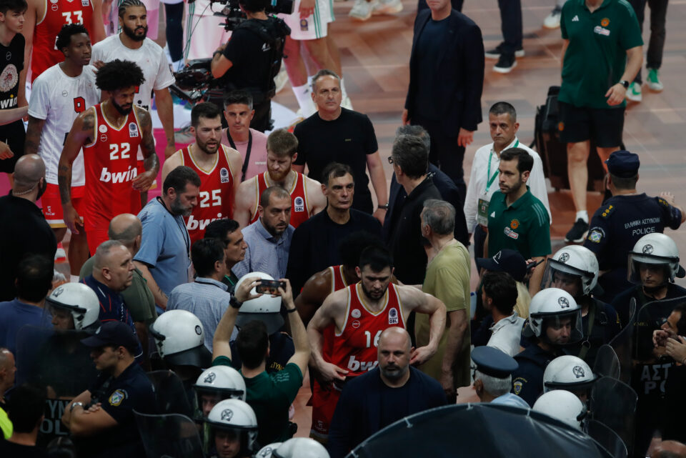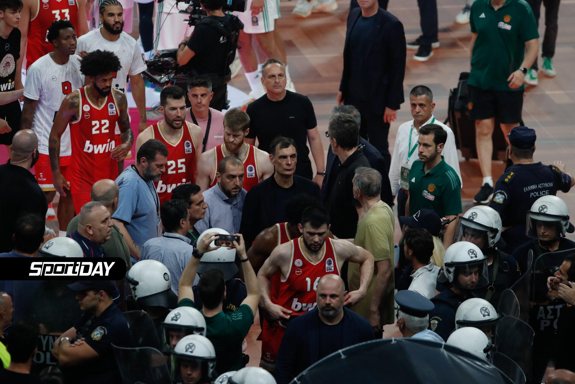 Αυτά που ζήσαμε σήμερα και μας γύρισαν σε παλιές εποχές ήταν ζούγκλα. Μέλη της αποστολής δέχθηκαν επίθεση στον πάγκο από ανθρώπους με διαπιστεύσεις ή χωρίς. Οι τραμπουκισμοί ήταν τόσο σκληροί που ο εισαγγελέας που καθόταν πίσω μας, είπε σε μέλος της αποστολής ‘θα φύγω κι εγώ από εδώ γιατί φοβάμαι’. Έγινε εισβολή φιλάθλων στο παρκέ, πέταξαν μία πινακίδα στον Φουρνιέ, ελπίζω να τα έχει δείξει αυτά η τηλεόραση. Ελπίζουμε η Πολιτεία με το ονομαστικό εισιτήριο και τις κάμερες να βρουν αυτούς τους ανθρώπους και να τους αποκλείσει για πάντα. Δεχθήκαμε τραμπουκισμούς στη φυσούνα από ανθρώπους που έβριζαν και έφτυναν. τόσο στο ημίχρονο όσο και στο τέλος. Θα πρέπει να υπάρξει πολύ σοβαρός συντονισμός όλων των αρχών. Ηρθαμε να παίξουμε μπάσκετ, ήμασταν η καλύτερη ομάδα, φύγαμε νικητές, αλλά αντιμετωπίσαμε μία κατάσταση που δεν ήταν καθόλου τιμητική για αυτές τις δύο ομάδες. Πραγματικά το παιχνίδι θα έπρεπε να διακοπεί. Οι κανονισμοί είναι σαφείς. Δέχθηκαν πάνω από 5 παρατηρήσεις που ξέρουμε ότι σε αυτές τις περιπτώσεις το γήπεδο θα έπρεπε να εκκενωθεί. Το κλίμα ήταν από παλιά, ήταν ζούγκλα. Περιμένουμε τον αντίπαλο με τον κόσμο μας στο ΣΕΦ, έχουμε μεγάλο σεβασμό για τον αντίπαλο. Οι φίλαθλοί μας δείχνουν μεγάλο σεβασμό και ας κερδίσει ο καλύτερος. Ευελπιστούμε να είμαστε εμείς νικητές.