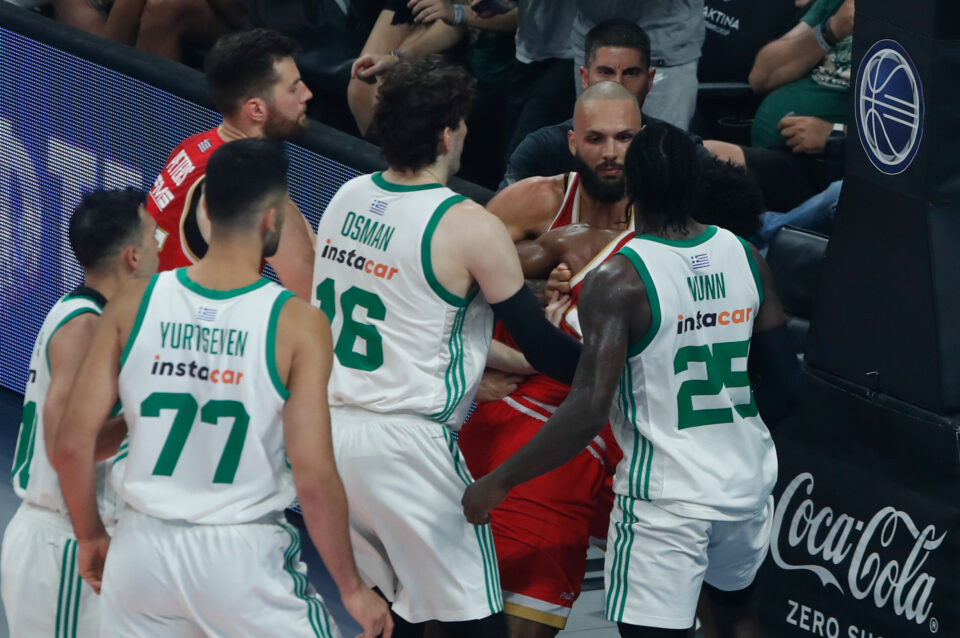 Αντιαθλητικό φάουλ στον Εβάν Φουρνιέ για χτύπημα στο πρόσωπο.