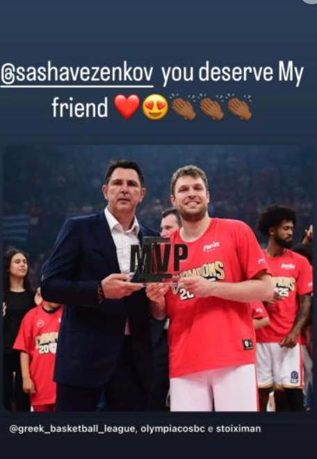 Ο Ροντινέι συνεχάρει τον φίλο του, Σάσα Βεζένκοφ, για την κατάκτηση του ελληνικού πρωταθλήματος.
