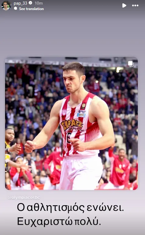 Ο Ιωάννης Παπαπέτρου είπε το «ευχαριστώ» του στον Ολυμπιακό με story στο Instagram.