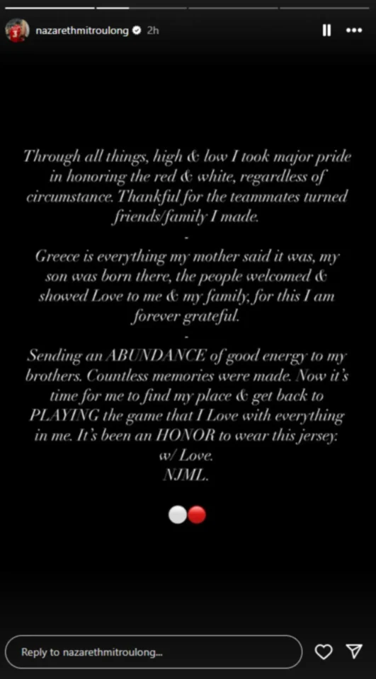 Ο Ναζ Μήτρου-Λονγκ αποχαιρέτησε τον Ολυμπιακό με ένα όμορφο μήνυμα.