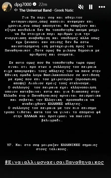 Ο ιδιοκτήτης της ΚΑΕ Παναθηναϊκός AKTOR, Δημήτρης Γιαννακόπουλος, πόσταρε στο instagram ένα μεγάλο μήνυμα όπου αναφέρθηκε στο ΣΕΦ και το Final 4.