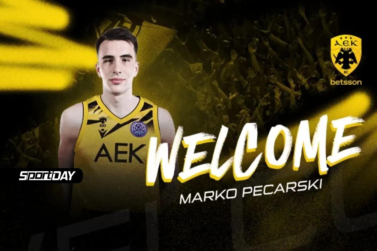 «Η ΑΕΚ Betsson BC βρίσκεται στην ευχάριστη θέση ν’ ανακοινώσει, ότι συνήψε συμφωνία με τον Μάρκο Πετσάρσκι (Marko Pecarski, 25 χρ., 2μ.08).