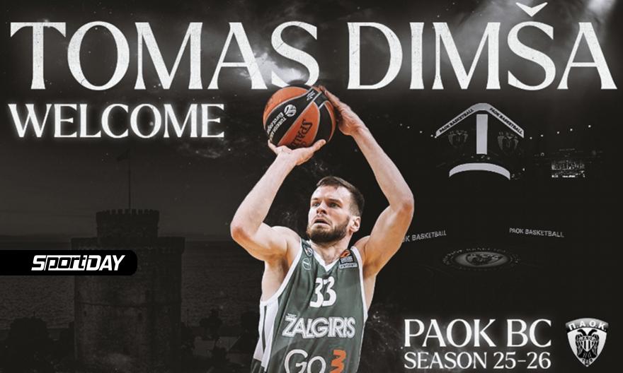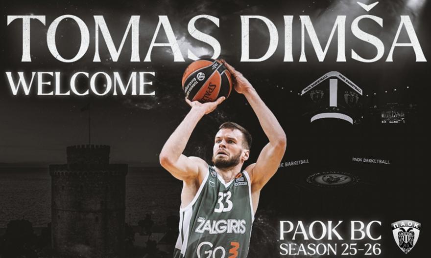 «Η ΚΑΕ ΠΑΟΚ mateco ανακοινώνει τη συμφωνία με το Λιθουανό καλαθοσφαιριστή Tomas Dimsa για την αγωνιστική περίοδο 2025-26.