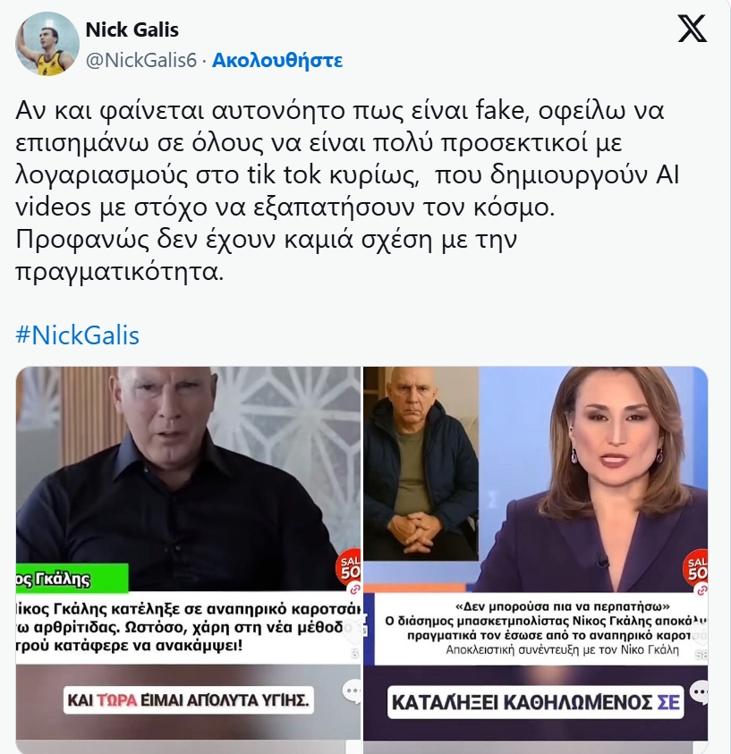 Νίκος Γκάλης: Χρήστης του Τik Τok δημιούργησε AI video με τον Γκάλη σε αναπηρικό αμαξίδιο!