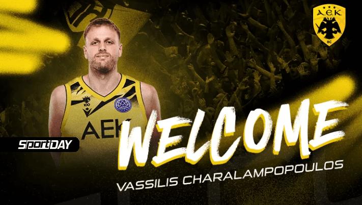 «Η ΑΕΚ BC βρίσκεται στην ευχάριστη θέση ν’ ανακοινώσει, ότι συνήψε συμφωνία με τον Βασίλη Χαραλαμπόπουλο (27 χρ., 2μ.04).