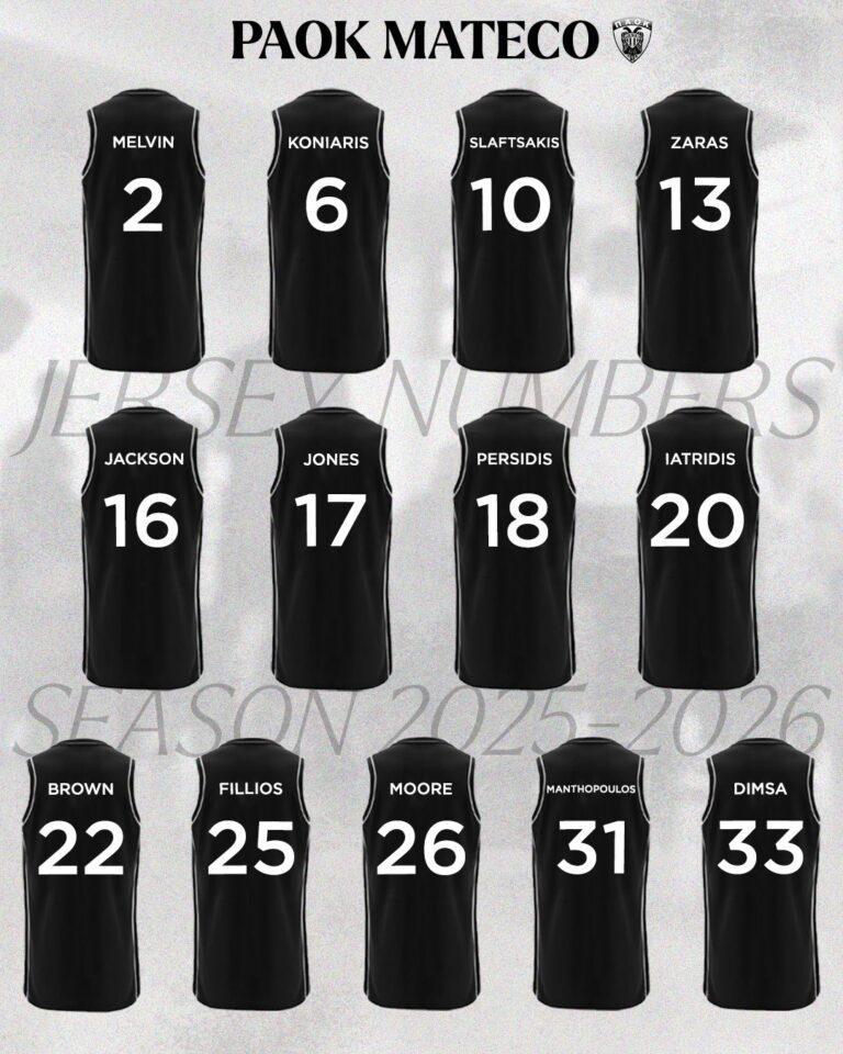 Ο ΠΑΟΚ γνωστοποίησε τα νούμερα φανέλας των παικτών του για τη σεζόν 2025/26, με τους Μέλβιν και Κόνιαρη να επιλέγουν μονοψήφιο. Η ομάδα του Γιούρε Ζντοβτς έχει ξεκινήσει προετοιμασία από τις 12 Αυγούστου, ενόψει των προκριματικών του Basketball Champions League.