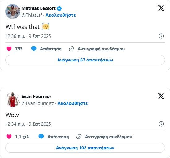 «Ουάου», ήταν η αντίδραση του ερυθρόλευκου Εβάν Φουρνιέ, ενώ ο Ματίας Λεσόρ ήταν περισσότερο… εκφραστικός γράφοντας: «Τι στο διάολο ήταν αυτό;»