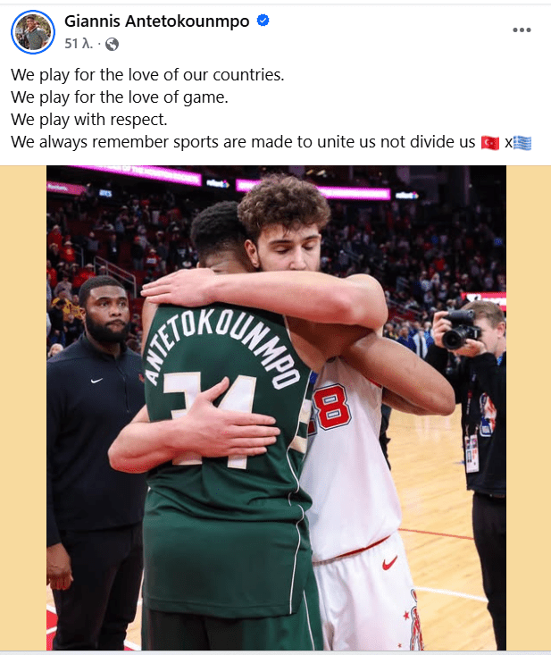 Γιάννης Αντετοκούνμπο: Δημοσίευση... μεγαλείου αγκαλιά με τον Σενγκούν - «Ο αθλητισμός είναι φτιαγμένος για να μας ενώνει»