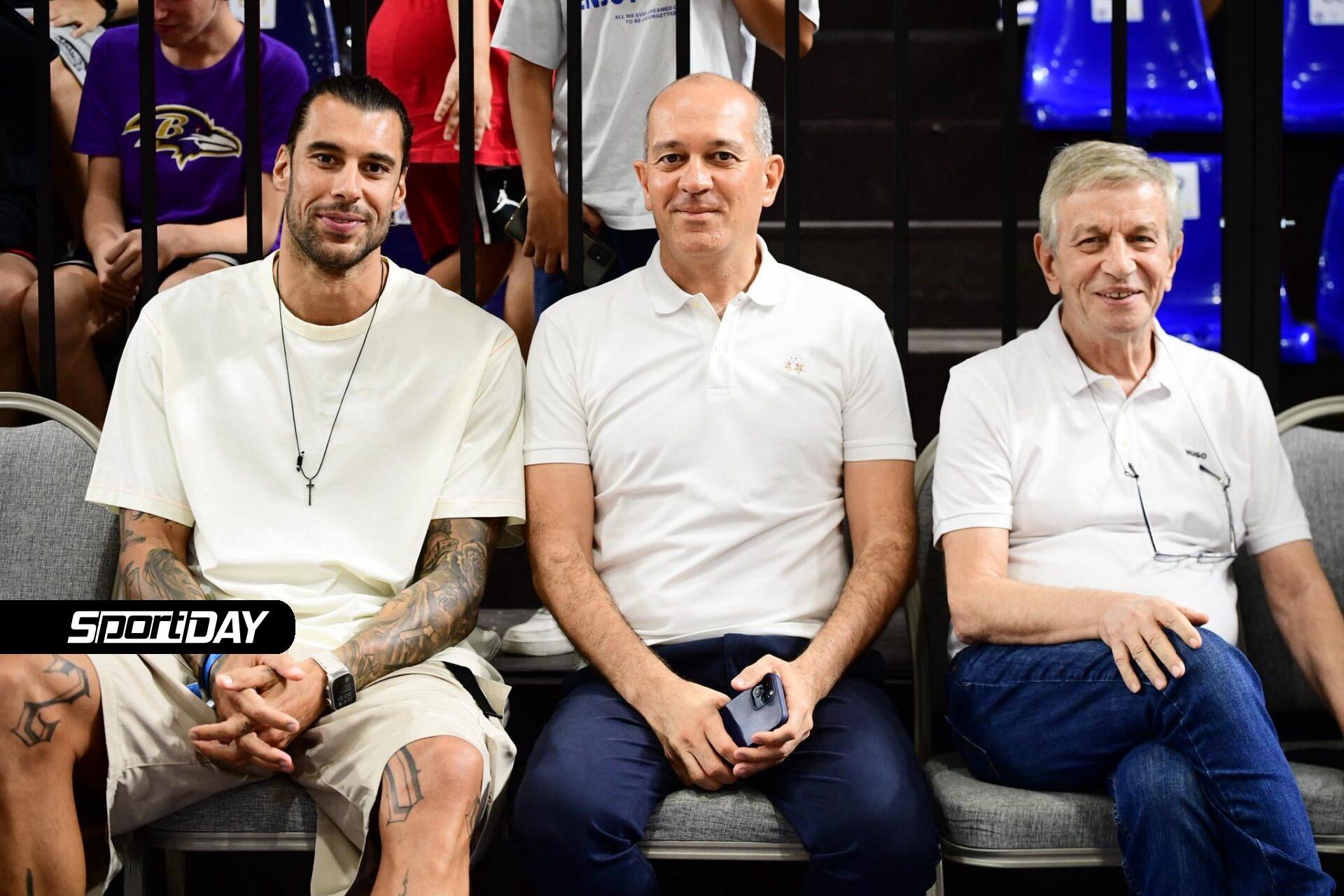 Ο Γιώργος Αγγελόπουλος, ο αντιπρόεδρος, Γιώργος Σκινδήλιας και ο Γιώργος Πρίντεζης, βρίσκονται στο κλειστό της Ρόδου