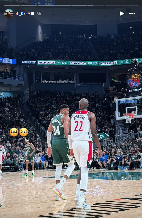 Ο Ρίτσαρντ Σιάο κάθισε στην αγαπημένη του θέση στα court seats δίπλα στους πάγκους των δύο ομάδων και συνεχώς ανέβαζε στιγμιότυπα στο λογαριασμό του στο Instagram, έχοντας το φακό του στραμμένο στον Γιάννη και τον Θανάση Αντετοκούνμπο, αλλά και στον φίλο του Κάιλ Κούζμα.