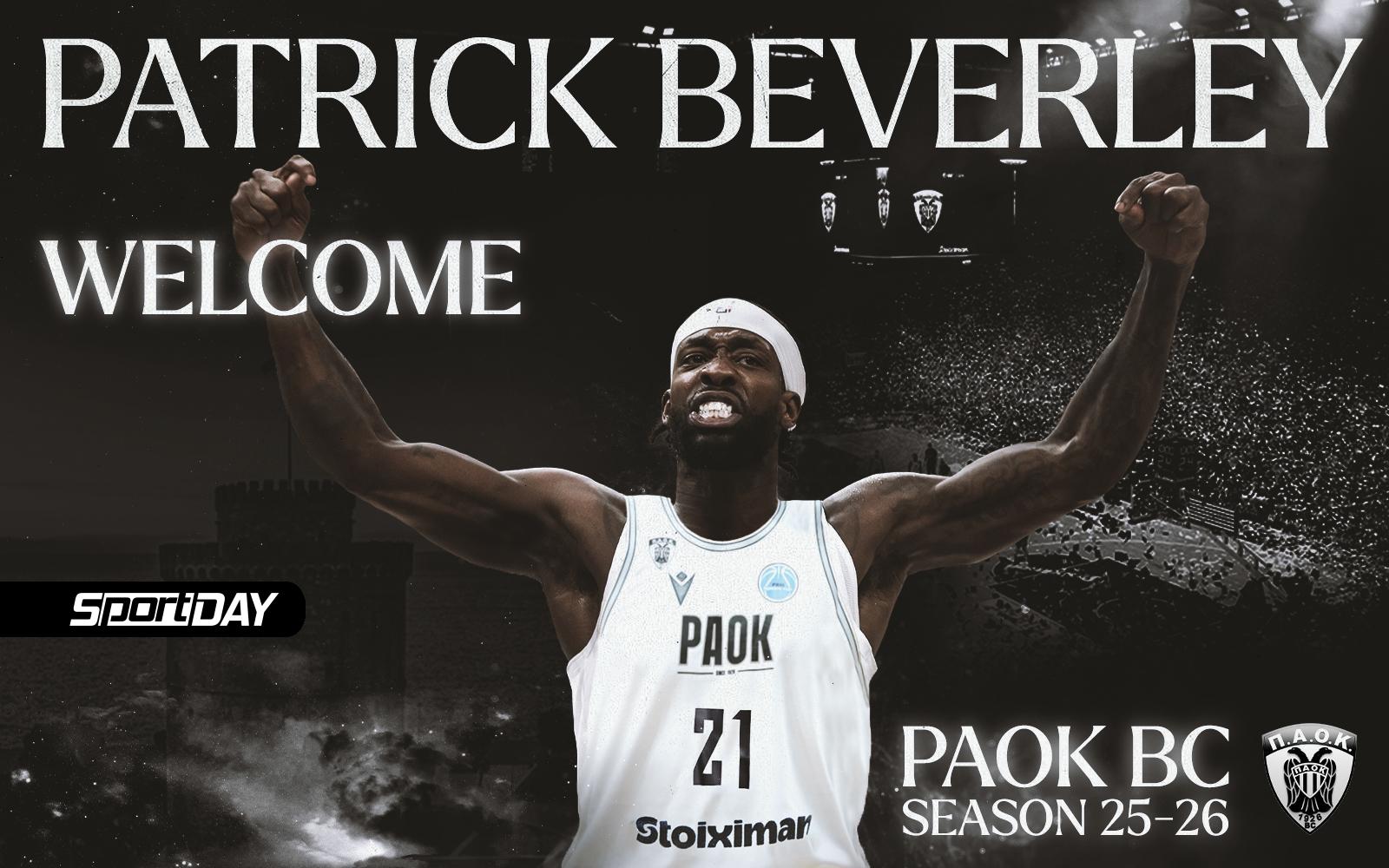 Η ΚΑΕ ΠΑΟΚ ανακοινώνει τη συμφωνία με τον Αμερικανό καλαθοσφαιριστή Patrick Beverley, ο οποίος θα ενισχύσει την προσπάθεια της ομάδας μας μέχρι το τέλος της αγωνιστικής περιόδου 2025-26.