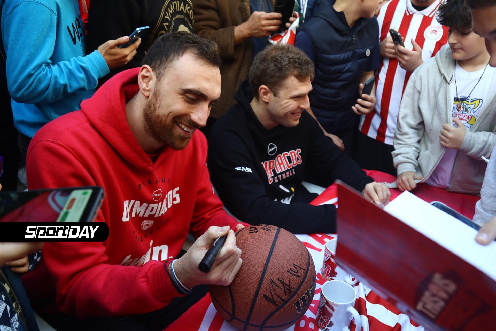 Ο έμπειρος άσος έδωσε το «παρών» στην εορταστική εκδήλωση της ομάδας μπάσκετ του Ολυμπιακού στο Official Road Store, στην πλατεία Κοραή του Πειραιά.