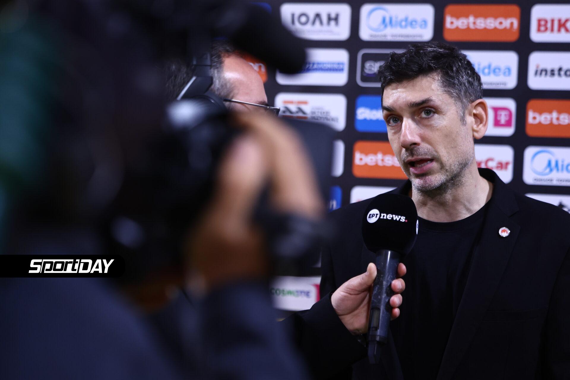 Και συνέχισε: «Όσον αφορά για τη διαιτησία που λένε όλοι, με αυτά που ανέφερα προηγουμένως δεν μπορώ να μιλήσω για την διαιτησία. Αν ήμασταν καλοί να έλεγα κάτι. Παρόλα αυτά επειδή έχουμε κάνει σεμινάριο και έχουν έρθει διαιτητές και μας έχουν μιλήσει, μας έχουν πει ότι μπορεί να έχουν μια κακή βραδιά. Όπως συμβαίνει σ’ έναν παίκτη και σε μια ομάδα. Προφανώς είχαν και αυτοί. Δεν χάσαμε από τη διαιτησία, είναι το μόνο σίγουρο,. Δεν πρέπει να επικεντρωθούμε στην διαιτησία αλλά στο τι κάνουμε εμείς».