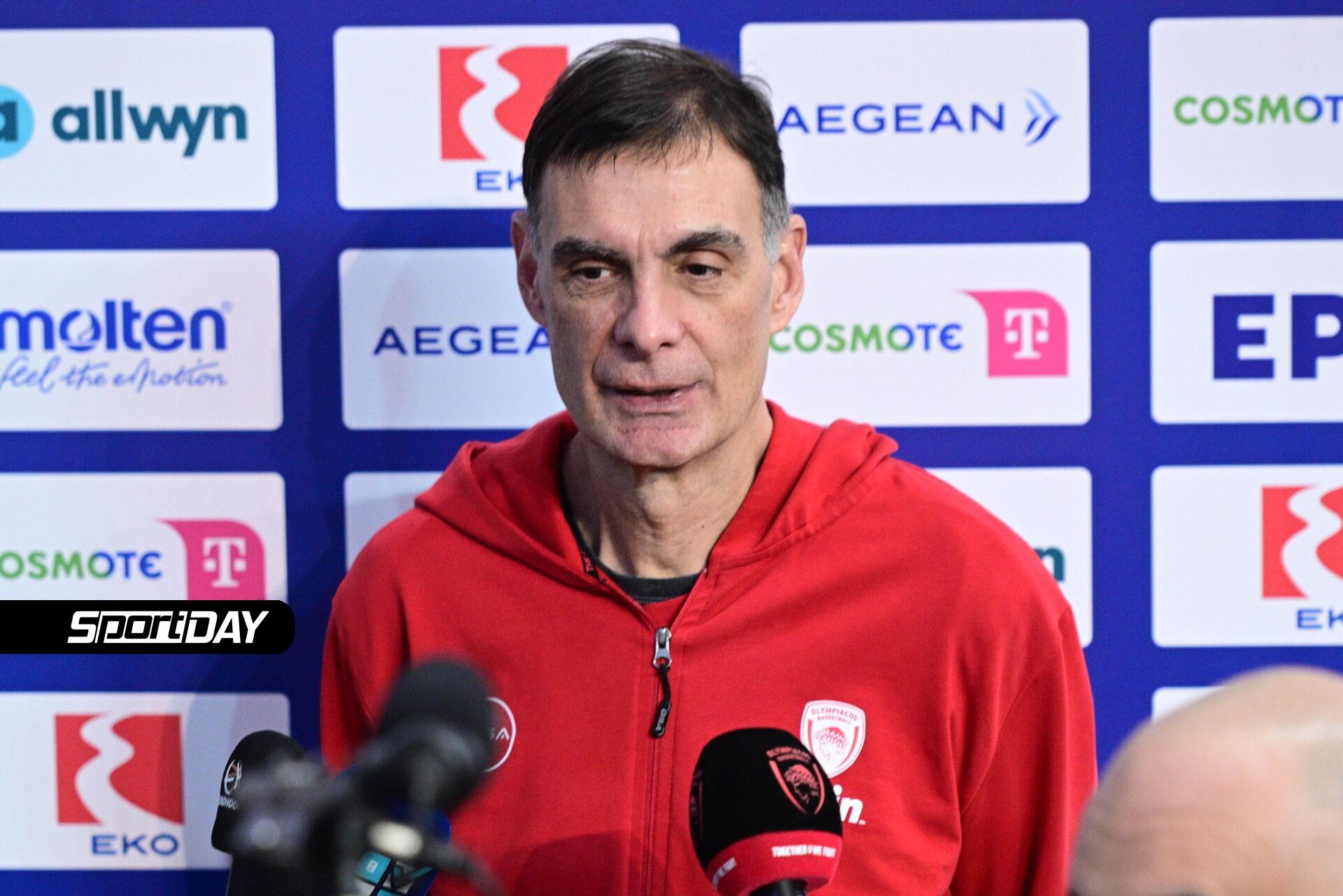Για το αν είναι οδηγός η νίκη του Ολυμπιακού με τον για τη EΠαναθηναϊκό uroLeague: «“Ξεκάθαρα όχι. Κανείς δεν σκέφτεται τι έχει γίνει στο παρελθόν. Από την τελευταία νίκη μας έχουν μεσολαβήσει πάρα πολλά πράγματα και στις δύο ομάδας. Θετικά και αρνητικά. Η ζωή εξελίσσεται και ανατρέπονται όλα. Τα παιχνίδια αυτά είναι πολύ ιδιόμορφα, πάντα πολύ ιδιαίτερα. Συχνά και οι δύο ομάδες να παίζουν σε ένα επίπεδο μέσα στο ματς και μία, δύο φάσεις να κρίνουν όλο το παιχνίδι. Οπότε ας είμαστε λίγο φειδωλοί σε αυτά που λέμε. Πιστεύουμε βέβαια στην ομάδα μας. Πιστεύουμε πως είμαστε καλή ομάδα και μπορούμε να κερδίσουμε τον Παναθηναϊκό. Το έχουμε αποδείξει άλλωστε. Απέχει όμως πολύ με το να το κάνουμε όμως».