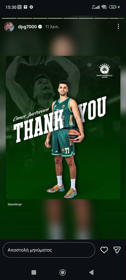 Ο Τούρκος σέντερ αποχώρησε από τους «πράσινους» και ο Δημήτρης Γιαννακόπουλος δεν παρέλειψε να κάνει ξεχωριστό story.