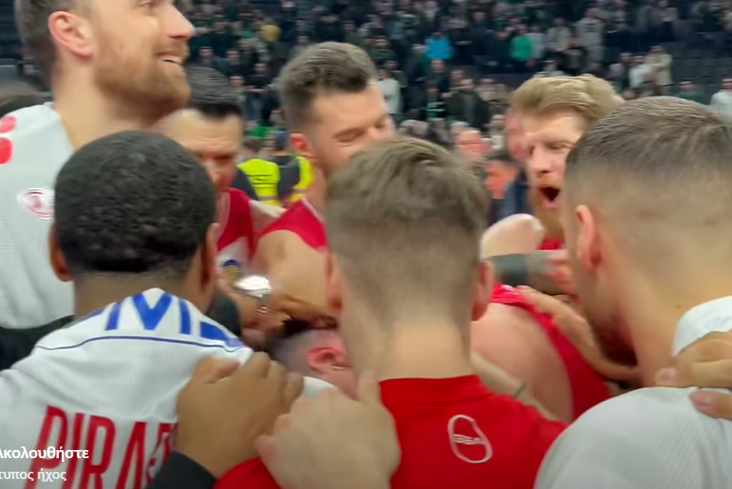 Αποθεώθηκε από τους συμπαίκτες του ο Γιαννούλης Λαρεντζάκης μετά την εξαιρετική εμφάνισή του στη νίκη του Ολυμπιακού επί του Παναθηναϊκού.