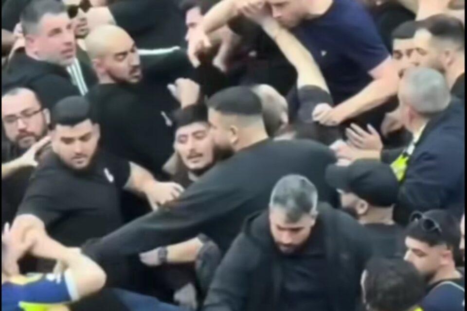 Ενώ η ομάδα του Σαρούνας Γιασικεβίτσιους προσπαθούσε να παραμείνει ανταγωνιστική στο παιχνίδι, στις κερκίδες επικρατούσε ένταση που ξέφυγε από κάθε έλεγχο. Οπαδοί της τουρκικής ομάδας συγκρούστηκαν μεταξύ τους, δημιουργώντας σκηνές που θύμιζαν… πεδίο μάχης.