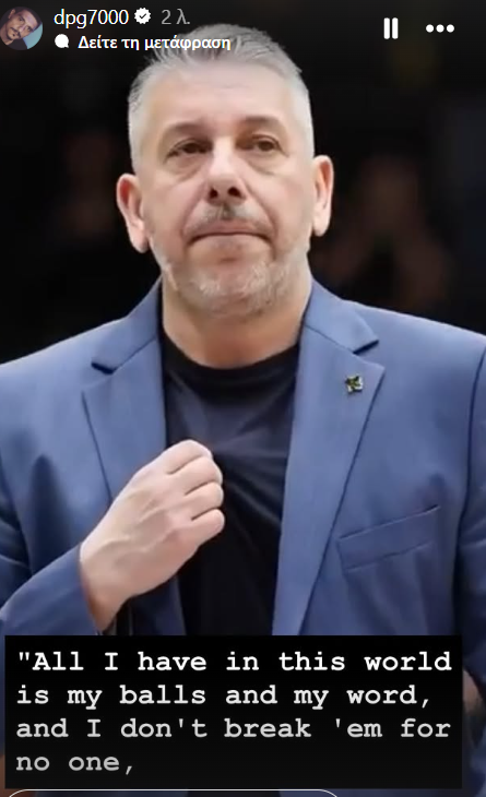 Με στόρι του στο Instagram, ο ισχυρός άνδρας των «πράσινων» δημοσίευσε φωτογραφία του Παπαθεοδώρου και έγραψε: «Ολα όσα έχω σε αυτόν τον κόσμο είναι… οι μπάλες και ο λόγος μου, και δε τα σπάω για κανέναν».
