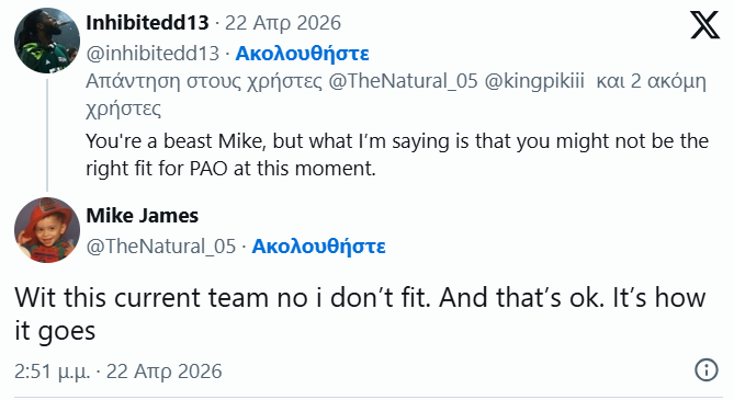 Ο Μάικ Τζέιμς έγραψε στο «X» για το αν… ταιριάζει στον Παναθηναϊκό!