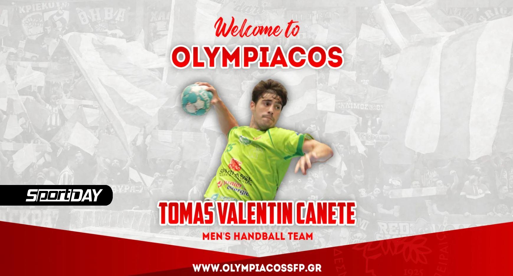«Ο ΟΛΥΜΠΙΑΚΟΣ Σ.Φ.Π. ανακοινώνει την έναρξη της συνεργασίας του με τον Τόμας Βαλεντίν Κανιέτε. Ο διεθνής Αργεντινός, με ιταλικό διαβατήριο, play maker (ημ. γέννησης 14/1/1999, 1,88μ.) υπέγραψε το νέο του συμβόλαιο και εντάσσεται στο ρόστερ της ομάδας χάντμπολ του συλλόγου.