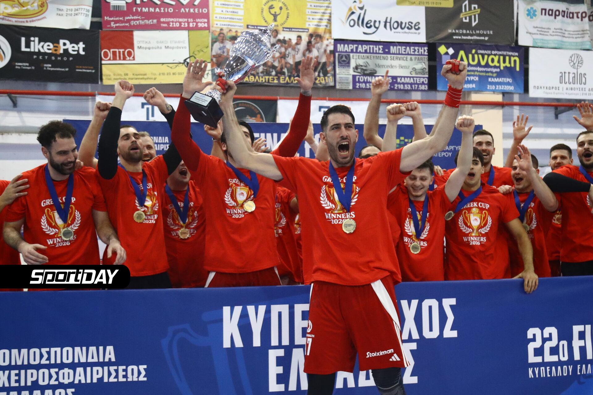 Και το 2026… ο Ολυμπιακός μετρά κούπες σε όλα τα αθλήματα! Η ομάδα του Χάντμπολ Ανδρών έκανε το 2/2 στους φετινούς τίτλους, νίκησε την ΑΕΚ στον τελικό Κυπέλλου και κατέκτησε ακόμα ένα τρόπαιο.
