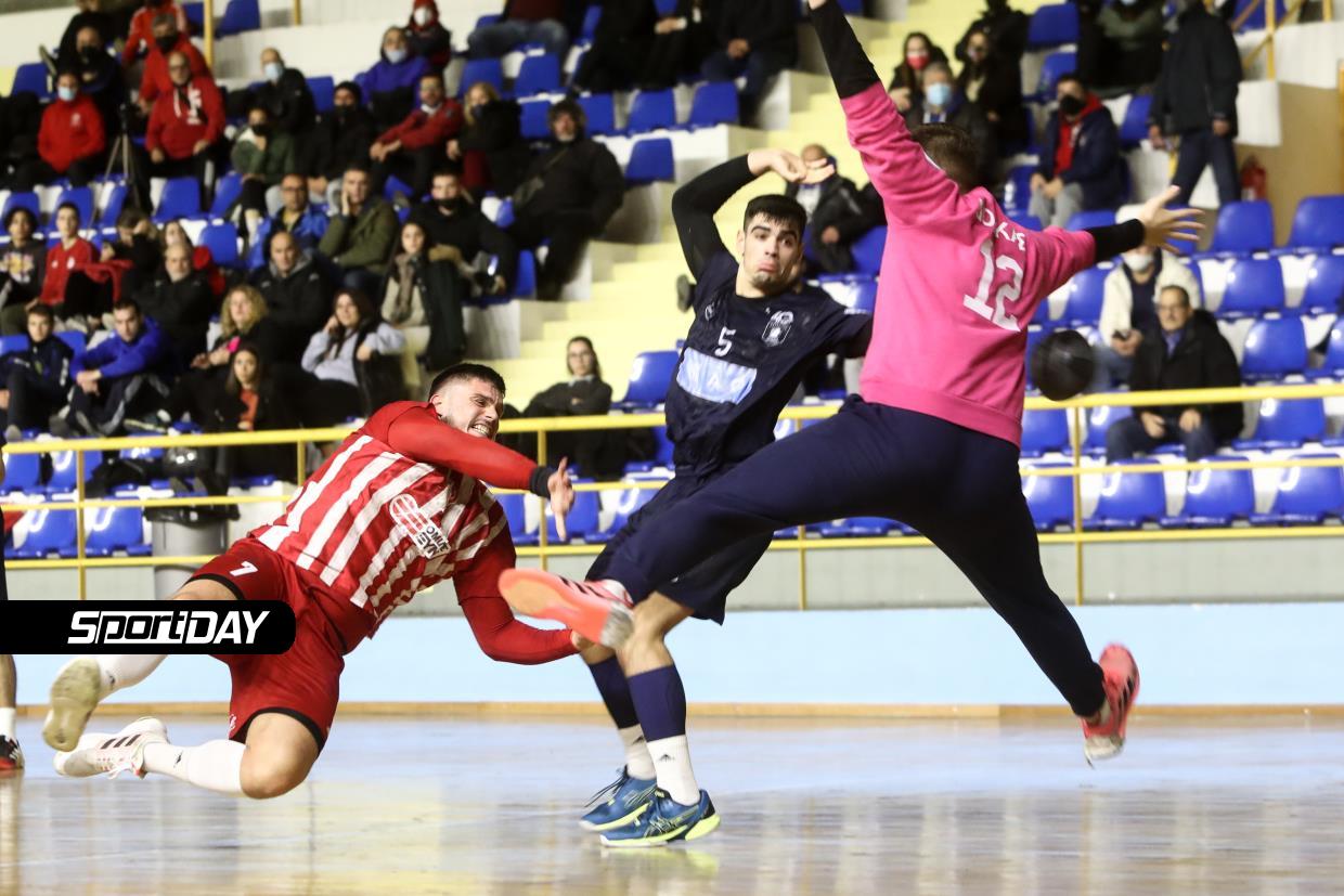 Οι «ερυθρόλευκοι» πήγαν στην ανάπαυλα με προβάδισμα δύο τερμάτων (16-14) και στο δεύτερο μέρος κυριάρχησαν απόλυτα. Ξέφυγαν με 25-19 και 29-21 και με πρώτο σκόρερ τον Παπαδόπουλο, που είχε εννιά γκολ, έφτασαν σχετικά άνετα στην τελική επικράτηση.