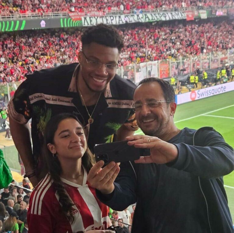 ΠοδόσφαιροΟλυμπιακός Ολυμπιακός: Η φωτογραφία του προέδρου της Κύπρου και της κόρης του με τον Γιάννη Αντετοκούνμπο