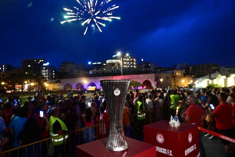 ΠοδόσφαιροΟλυμπιακός Ολυμπιακός: Ερυθρόλευκη τρέλα στην πρώτη στάση της περιοδείας των ευρωπαϊκών τροπαίων στην Αίγινα