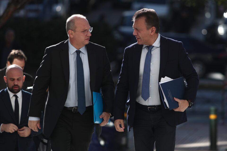 Με δυο φακέλους ανά χείρας έφτασαν στις 12:00, στον Άρειο Πάγο, οι υπουργοί Προστασίας του Πολίτη Γιάννης Οικονόμου και ο αρμόδιος υφυπουργός Αθλητισμού Γιάννης Βρούτσης.