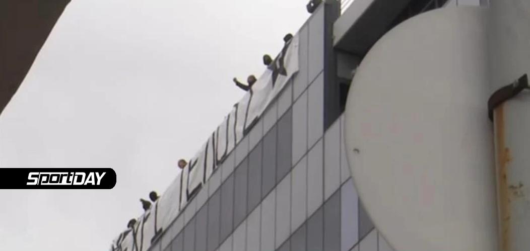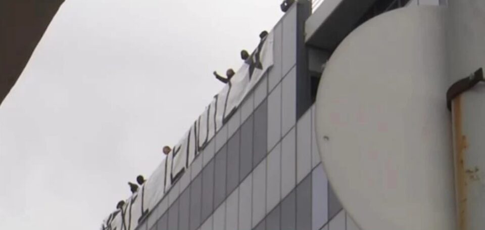 Τέμπη: Μέλη του Ρουβίκωνα ανέβηκαν στην ταράτσα των γραφείων της Hellenic Train και ανέβασαν πανό
