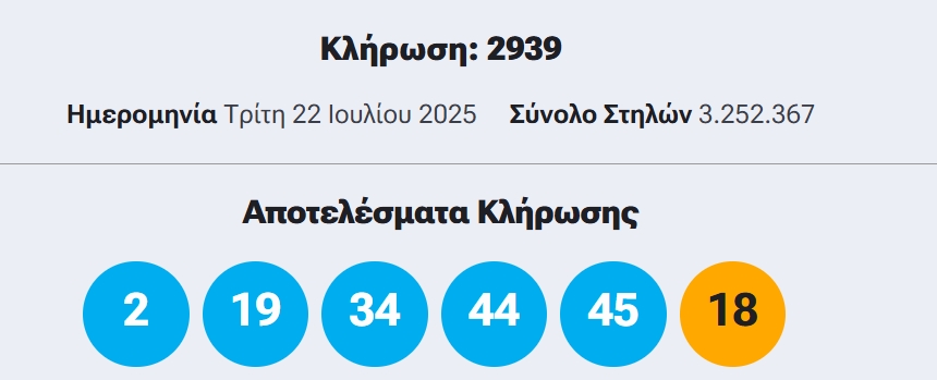 Κλήρωση Τζόκερ Τρίτη 22/07: Αυτοί είναι οι τυχεροί αριθμοί