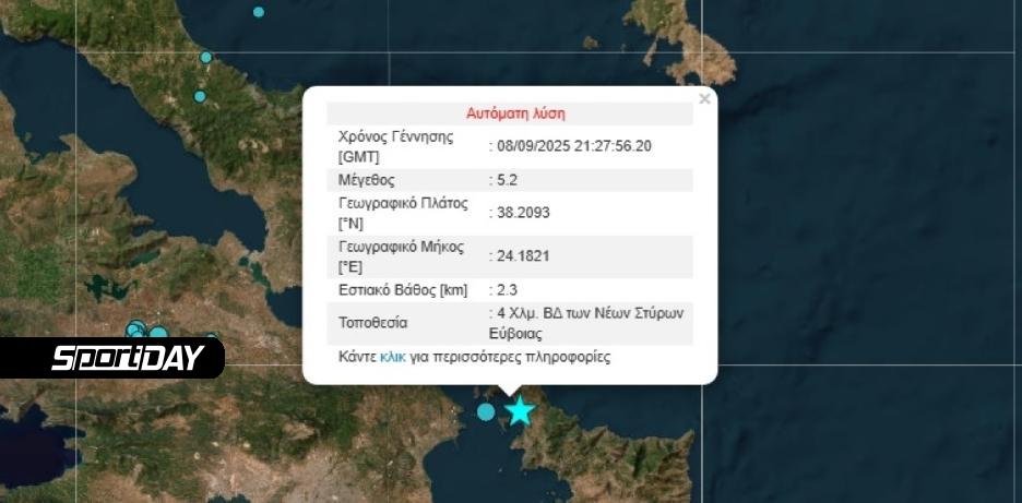 Σεισμός 5,2 Ρίχτερ στην Εύβοια, αισθητός στην Αθήνα.