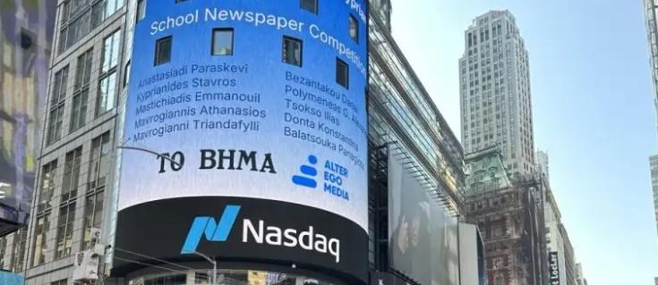 ΗΠΑ: Η Alter Ego Media και ο θεσμός των Μαθητικών Εφημερίδων του Βήματος στο billboard του Nasdaq της Νέας Υόρκης!