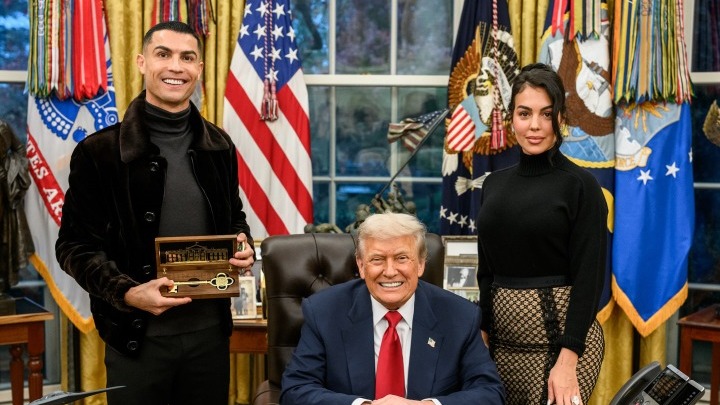 Μάλιστα, ο 40χρονος CR7, ο οποίος καθόταν σ’ ένα από τα τραπέζια του δείπνου σε περίοπτη θέση, όχι μακριά από τον Ντόναλντ Τραμπ, την επόμενη ημέρα συναντήθηκε ξανά με τον πρόεδρο των Ηνωμένων Πολιτειών, ο οποίος τον δέχτηκε στο οβάλ γραφείο.