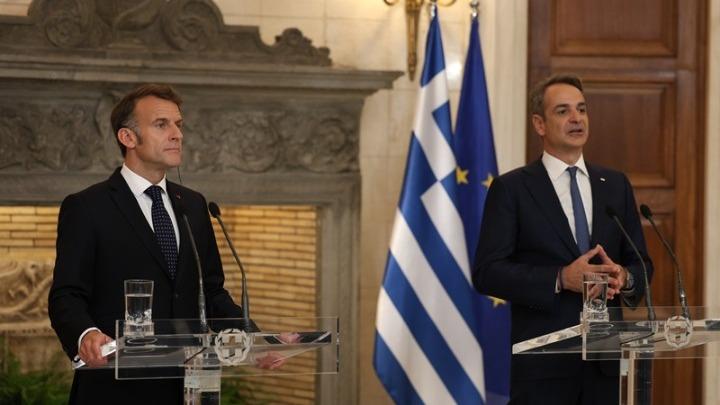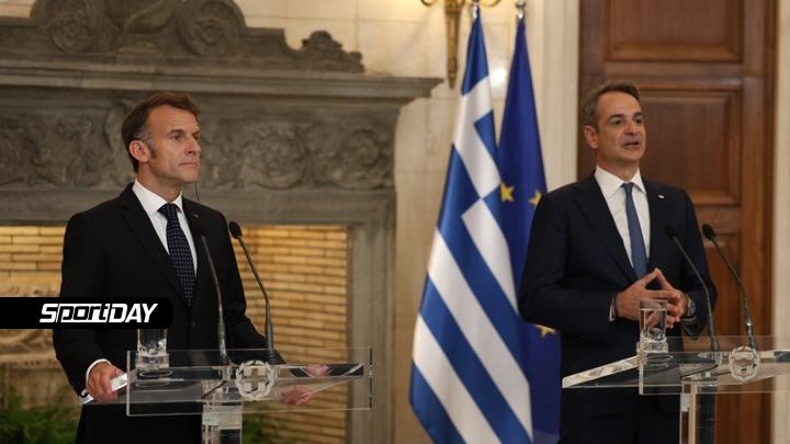«Η Αθήνα υποδέχεται σήμερα έναν διαχρονικά Ευρωπαίο σύμμαχο και εταίρο αλλά και έναν αληθινό φίλο της πατρίδας μας -κι επιτρέψτε μου να το πω- κι έναν προσωπικό μου φίλο. Σε μια στιγμή μάλιστα που θα την χαρακτήριζα κομβική καθώς σφραγίζει μία ιστορική επιλογή την οποία έκαναν οι δύο χώρες μας το 2021, δηλαδή την απόφαση Ελλάδα και Γαλλία να συμπαραταχθούν μετασχηματίζοντας μια μακροχρόνια κοινή διαδρομή σε μια ισχυρή στρατηγική σημασία», ανέφερε ο πρωθυπουργός Κυριάκος Μητσοτάκης στις κοινές δηλώσεις του με τον Γάλλο Πρόεδρο Εμανουέλ Μακρόν που ακολούθησαν τη συνάντησή τους και την τελετή υπογραφής συμφωνιών.