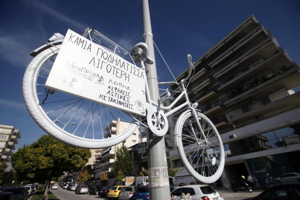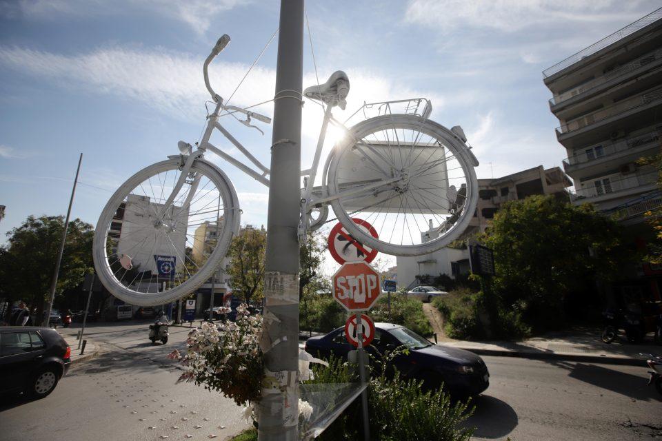 Ένα λευκό ποδήλατο με μια συγκινητική επιγραφή έχει κρεμασθεί στο σημείο που σκοτώθηκε η 42χρονη μαραθωνοδρόμος Δήμητρα Ιορδανίδου,
