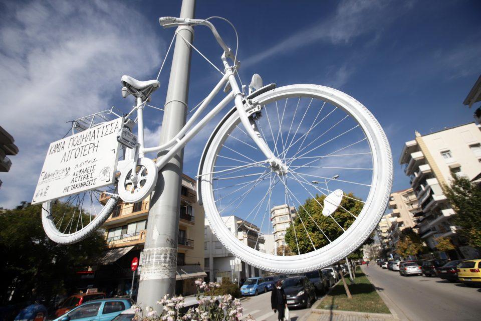 Ένα λευκό ποδήλατο με μια συγκινητική επιγραφή βρίσκεται κρεμασμένο στο σημείο που σκοτώθηκε πριν από λίγες ημέρες η 42χρονη μαραθωνοδρόμος Δήμητρα Ιορδανίδου, στη συμβολή των οδών Γρηγορίου Λαμπράκη και Αγίου Δημητρίου, στη Θεσσαλονίκη.