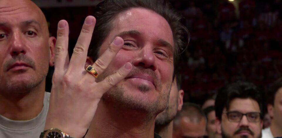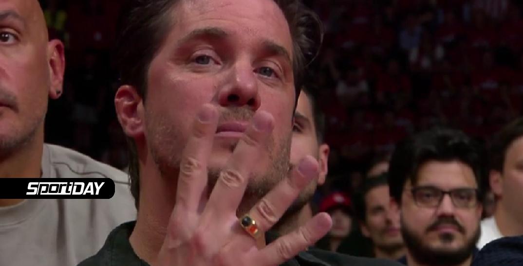Ο γνωστός τραγουδιστής παρακολούθησε το ματς από τις φροντ στις και όταν τον «έπιασε» η κάμερα, έδειξε τα 4 δάχτυλά του και έδωσε το… έναυσμα για την τέταρτη κατάκτηση του ευρωπαϊκού από τους Πειραιώτες.