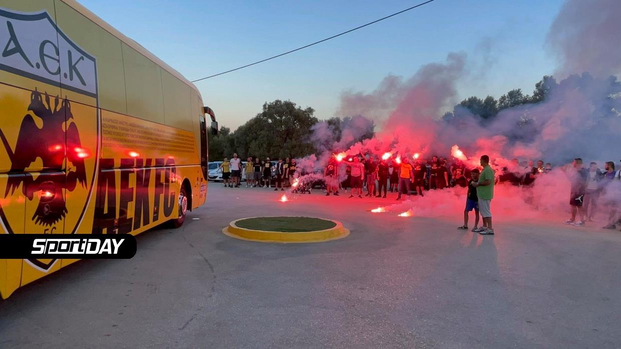 Μετά την απογευματινή προπόνηση, η αποστολή της ΑΕΚ αποθεώθηκε από παρευρισκόμενους οπαδούς οι οποίοι ζήτησαν το πρωτάθλημα
