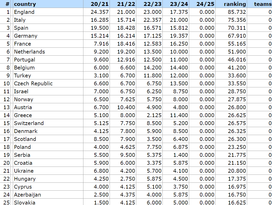 UEFA Ranking Ελλάδα: Η κατάταξη για τη νέα σεζόν